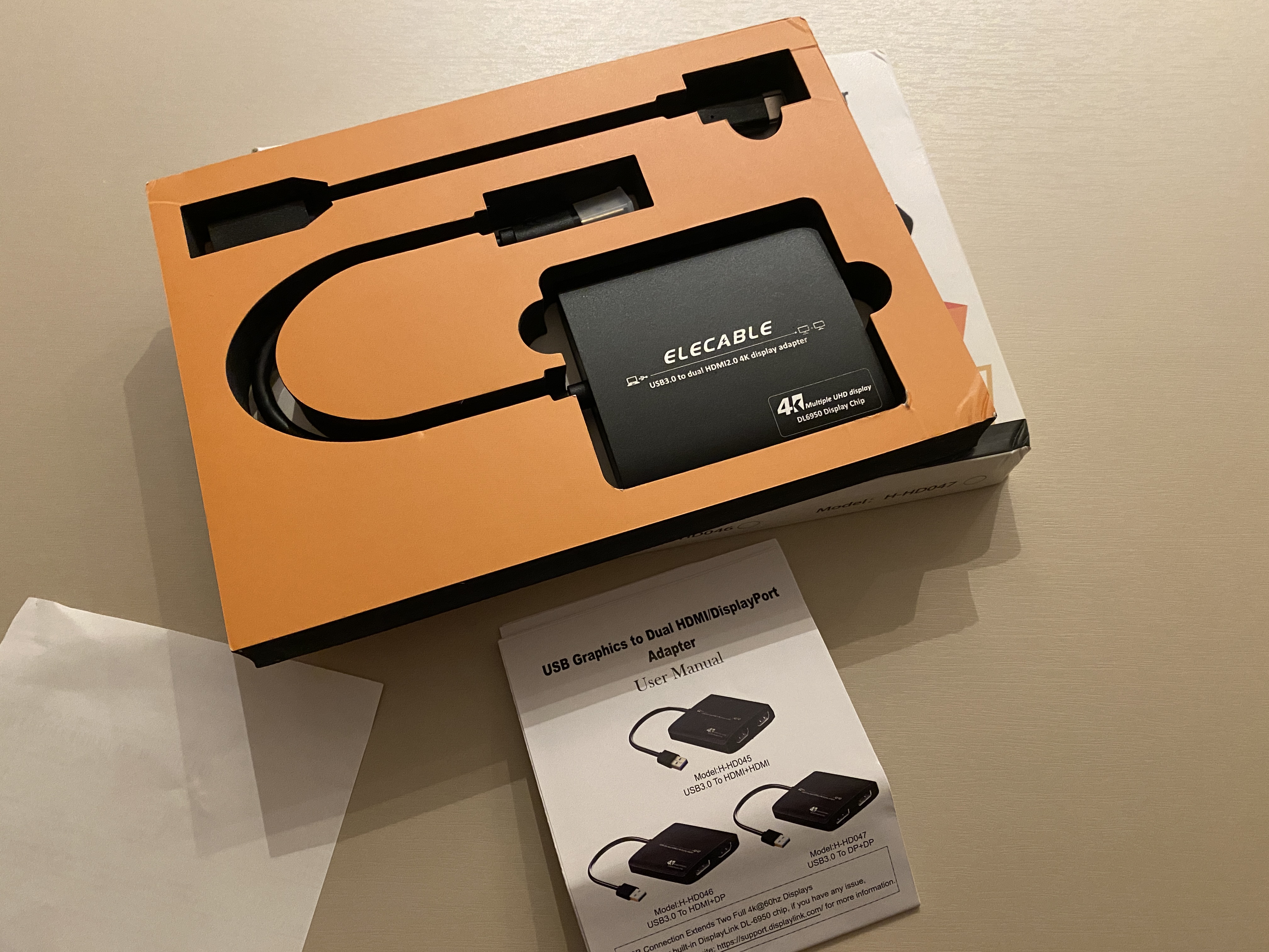 내가 주문한 2개의 어댑터이다. 하나는 2개의 HDMI 출력을 지원해서 모니터 2개를 어댑터 하나에서 처리가 가능하고 다른 하나는 1개의 HDMI 출력을 지원한다. 자세하게는 4K 해상도에서 60Hz 30Hz 차이도 있다.