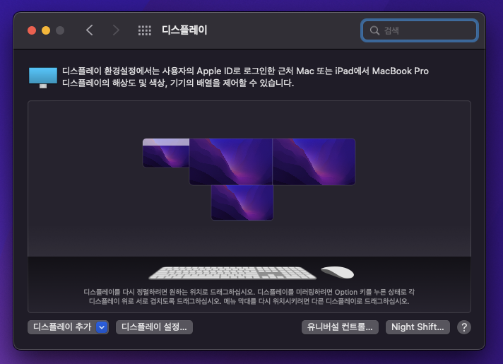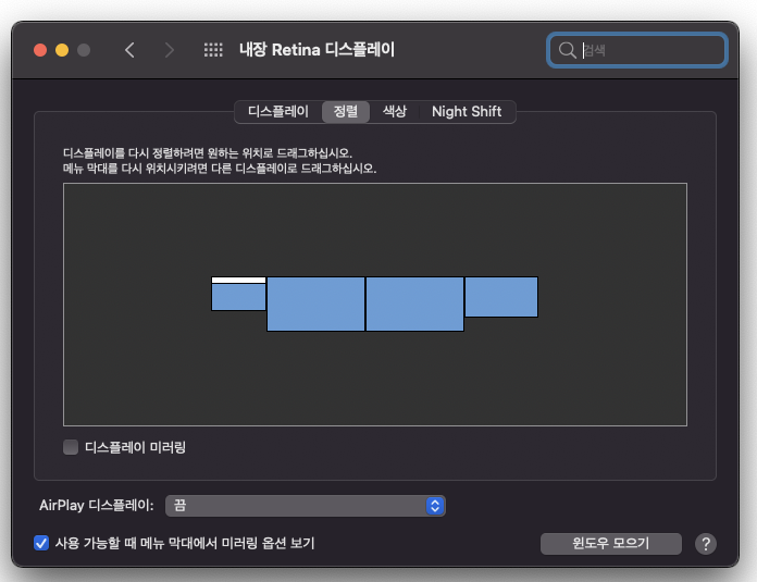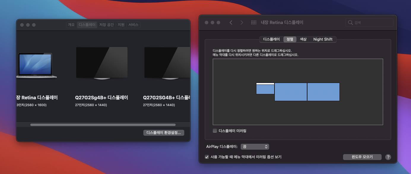 연결이 되면 디스플레이 설정에 위와 같이 연결된 모니터들이 표시된다.