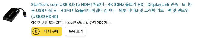 그러다 최근 다중 모니터 작업할 일이 많아 DisplayLink 어댑터를 구매했다. 작년까지만해도 국내 생산 어댑터도 있었던 것 같은데 지금은 단종되어 구할 수 없는 상태라 나는 아마존에서 2개의 어댑터를 구매했다. (11마존에도 있는듯)
