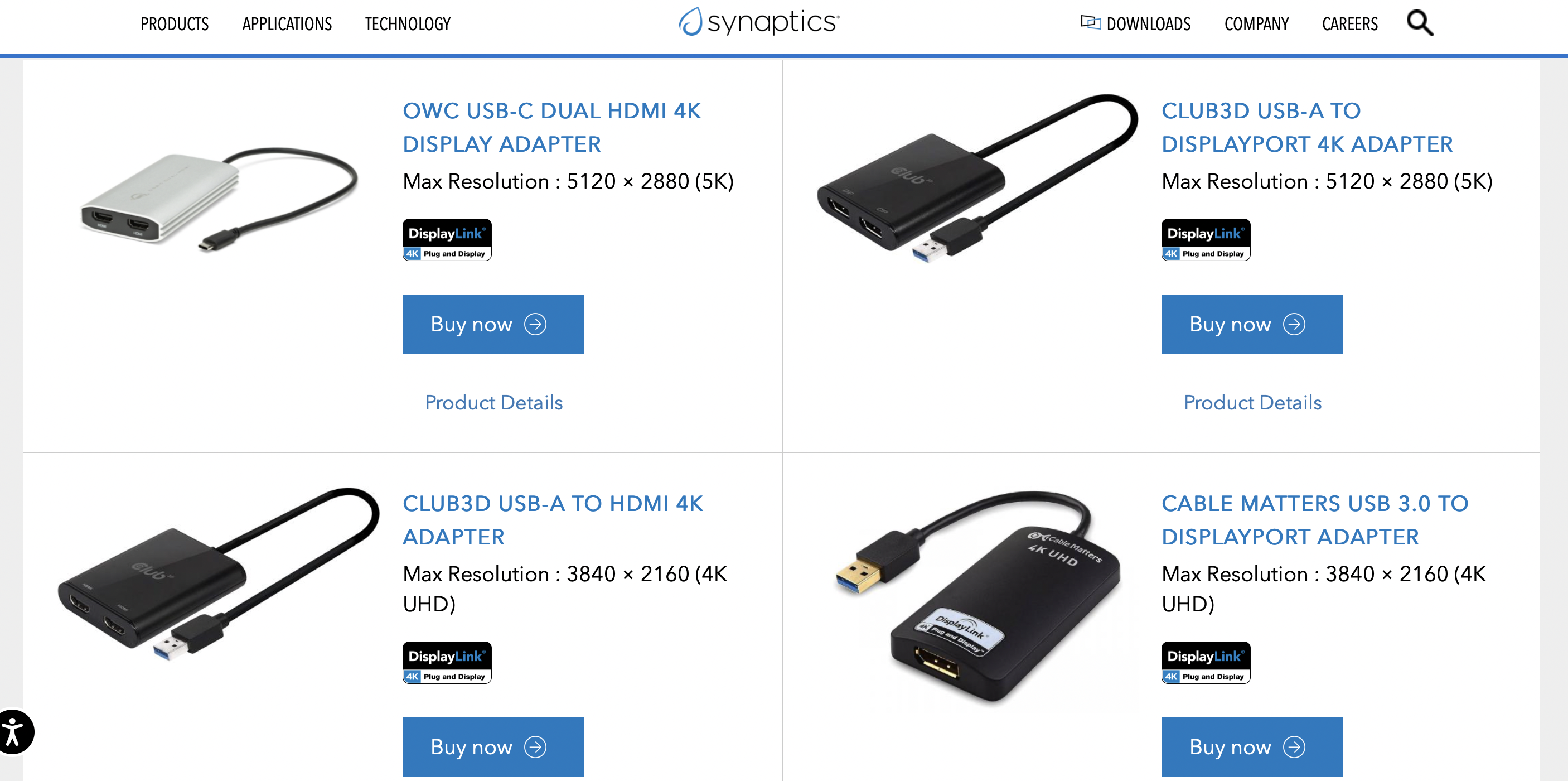 어떤 제품이 DisplayLink 칩셋이 적용된 것인지 구분하기 힘들다면 공식 홈페이지에서 도움을 받을 수 있다. (공식 홈페이지에 없더라도 적용된 제품이 있기도 함)