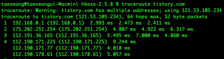 traceroute tistory.com